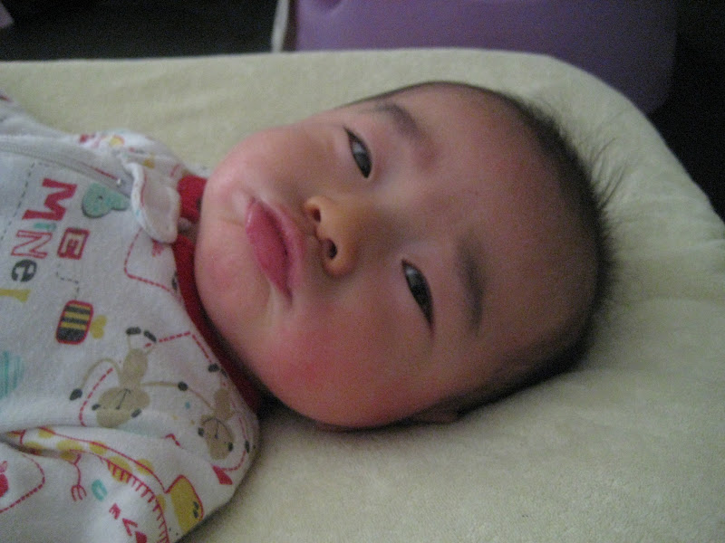 Nate still needs to be fed once or twice at night. This makes things a little harder for mommy. I do want to cut down the number of feedings at night, but I am also worried about his food intake. He does not drink too much milk. We started solids a few weeks ago and boy, he just HATES it. He will close his lips really tight and gags if any solids actually made it through. So far we have tried rice cereal, avocado and green beans. Maybe I should try something more sweet - like squash and carrots? He is really hard to please!